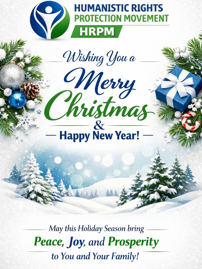 സ്നേഹവും കരുണയും മനുഷ്യ മനസ്സുകളിൽ പുനർജന്മം നേടുന്ന ദിനം മനുഷ്യാവകാശങ്ങൾ സംരക്ഷിക്കപ്പെടുകയും, നീതിയും സമത്വവും ഉറപ്പാക്കപ്പെടുകയും ചെയ്യുന്ന ഒരു സമൂഹത്തിനായി… Humanistic Rights Protection Movement — HRPM എപ്പോഴും പ്രതിജ്ഞാബദ്ധമാണ്. സമാധാനവും മാനവികതയും പ്രതീക്ഷയും നിറഞ്ഞ ഈ ക്രിസ്തുമസ് എല്ലാവർക്കും പുതിയ പ്രത്യാശയായി മാറട്ടെയെന്ന് ആശംസിക്കുന്നു. Merry Christmas.